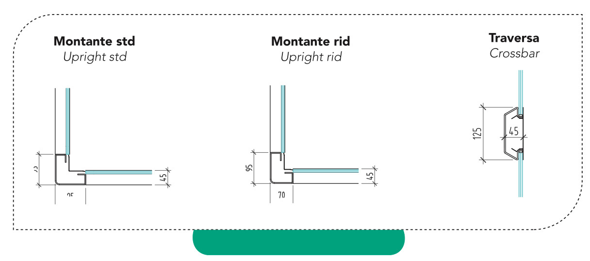 | Carter montanti e traverseUpright and crossbeam covers | ||||